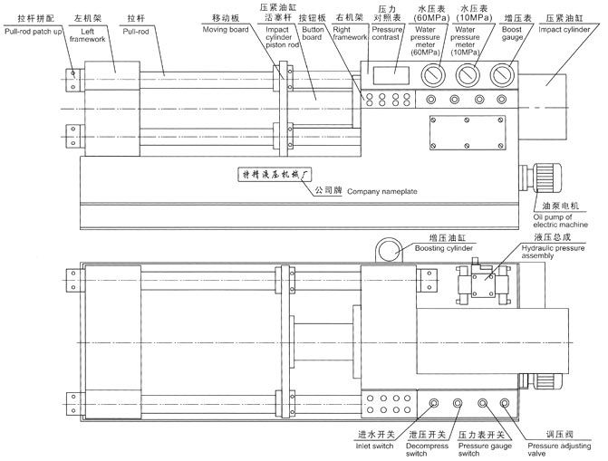 四、接通電源,按油泵起動,檢查電機(jī)轉(zhuǎn)動方向是否正確(順時(shí)針方向),調(diào)節(jié)油泵壓力在5 0MPa進(jìn)行試機(jī),檢查各管路有無泄漏,發(fā)現(xiàn)不良現(xiàn)象應(yīng)立即進(jìn)行檢修。