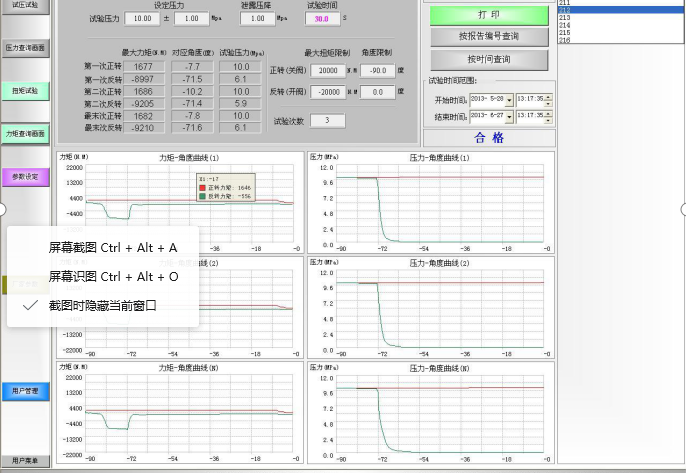 4. 該測(cè)試裝置應(yīng)能顯控閥門扭矩測(cè)試過程中任一開度位置的扭矩值,打印表格上應(yīng)有最大測(cè)試扭矩力,并能輸出打印(閥門開度位置與扭矩值對(duì)應(yīng)曲線圖)。